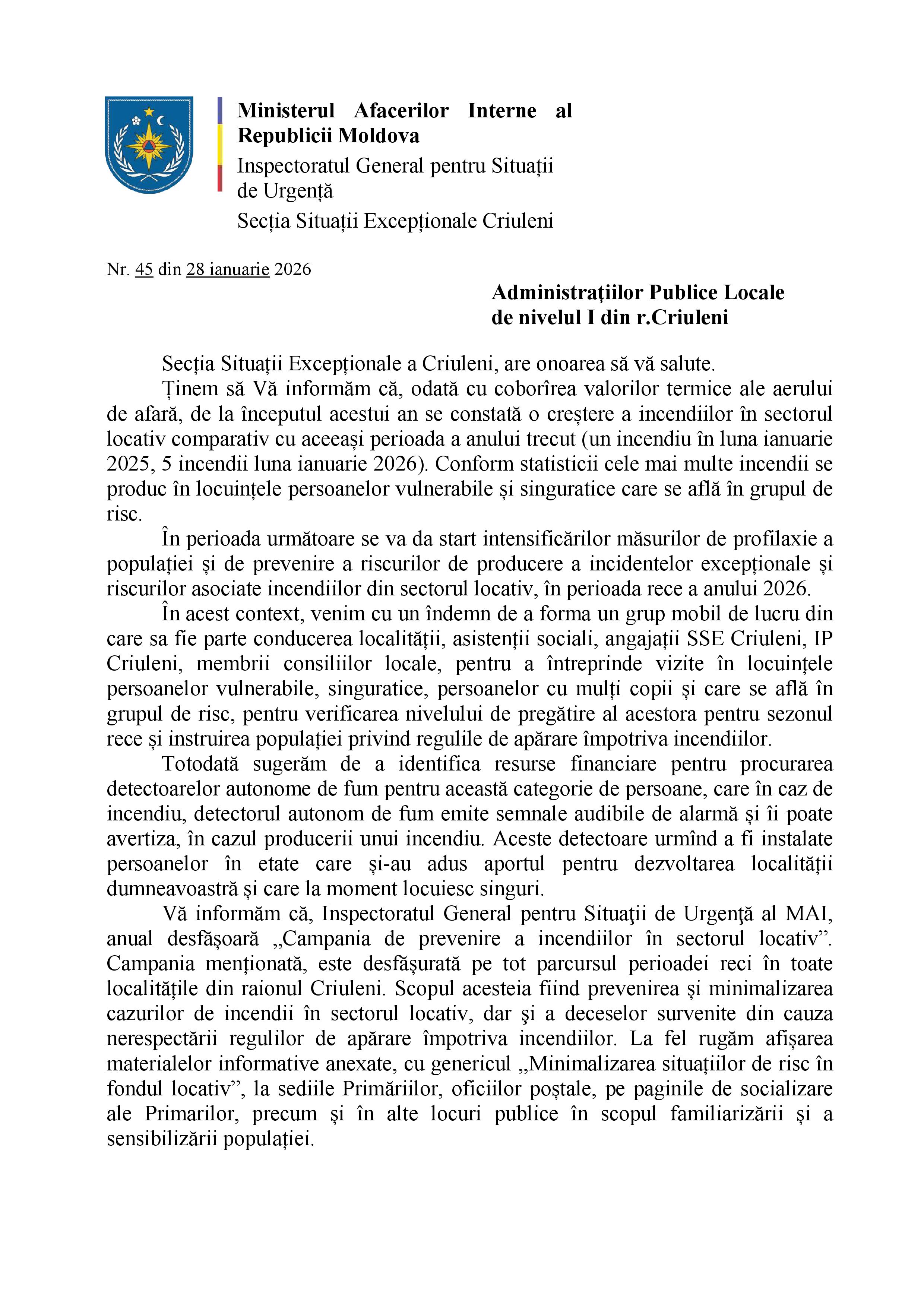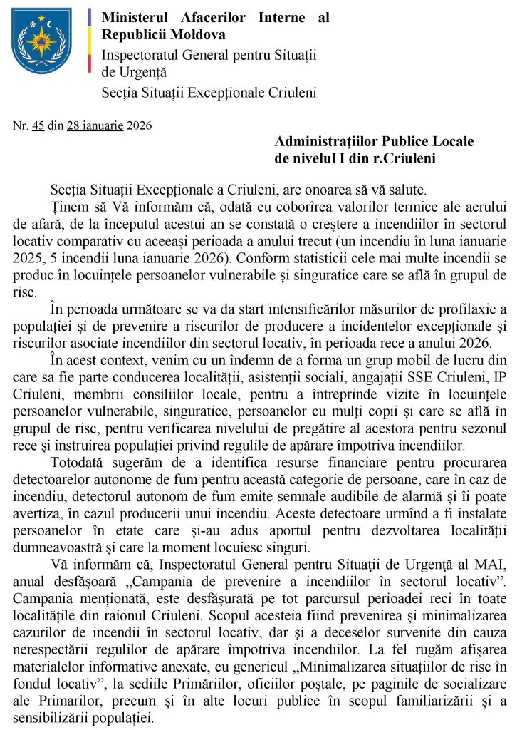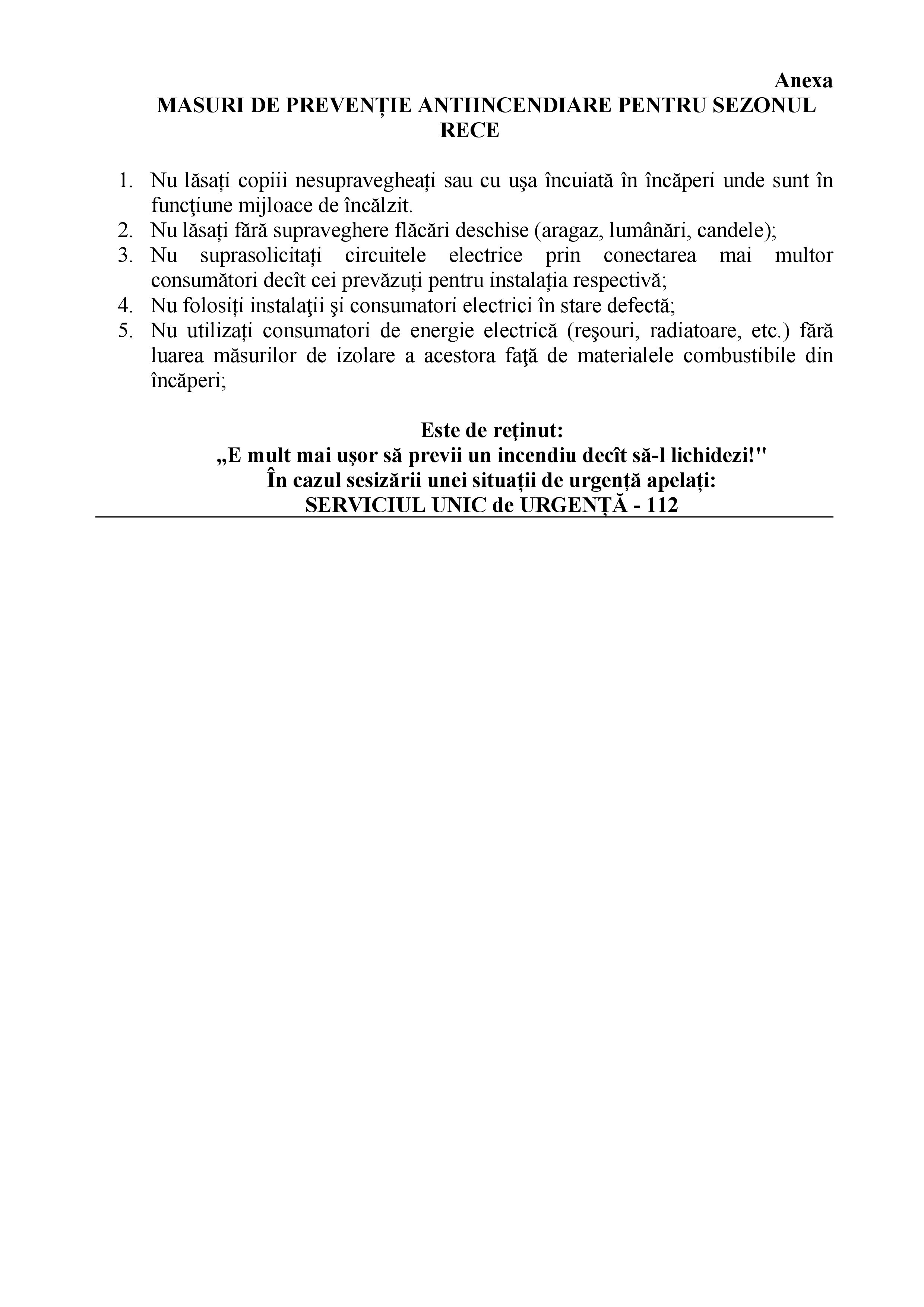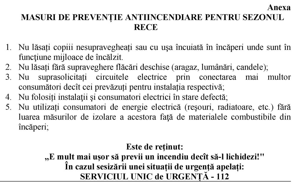 MASURI DE PREVENȚIE ANTIINCENDIARE PENTRU SEZONUL RECE